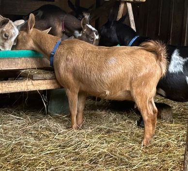 She is has grown into a pretty red doe with a well attached udder and very millable teats.