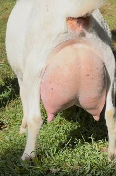 FF 12 our fill udder picture. A little uneven but as her capacity grew she evened out. We knew a couple weeks into lactation she was going to be special!