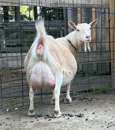 Nicely attached udder, can't wait for next year! This year her udder was much easier to milk than last year, with more capacity too!